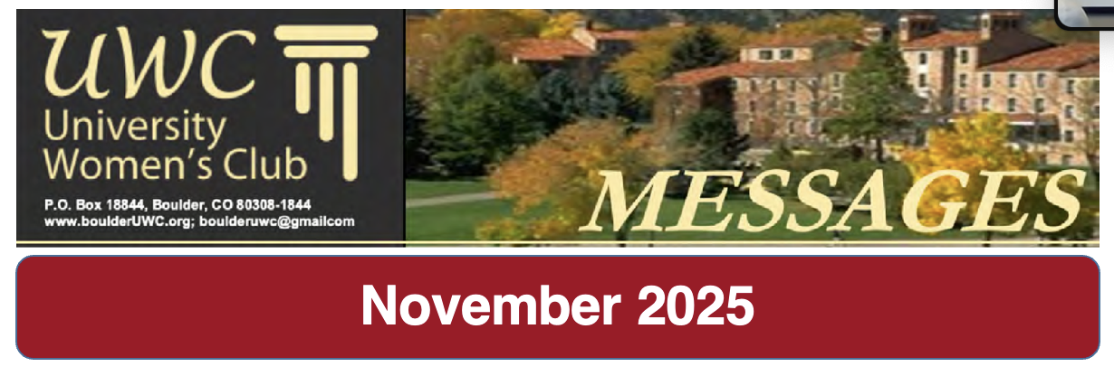 November is a time for special events within UWC. We are looking forward to another wonderful lecture lunch. Remember to register early; we do fill up. Sadly, we had to turn a few away for our October Luncheon, and we hated to have to do that. Our interest groups are thriving, offering new activities and fostering new friendships. I hope each of you is taking advantage of these opportunities to enrich your lives and build connections with others.